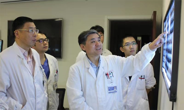 朱正纲教授(左三)与外科临床专家一起讨论病例。(受访者供图)